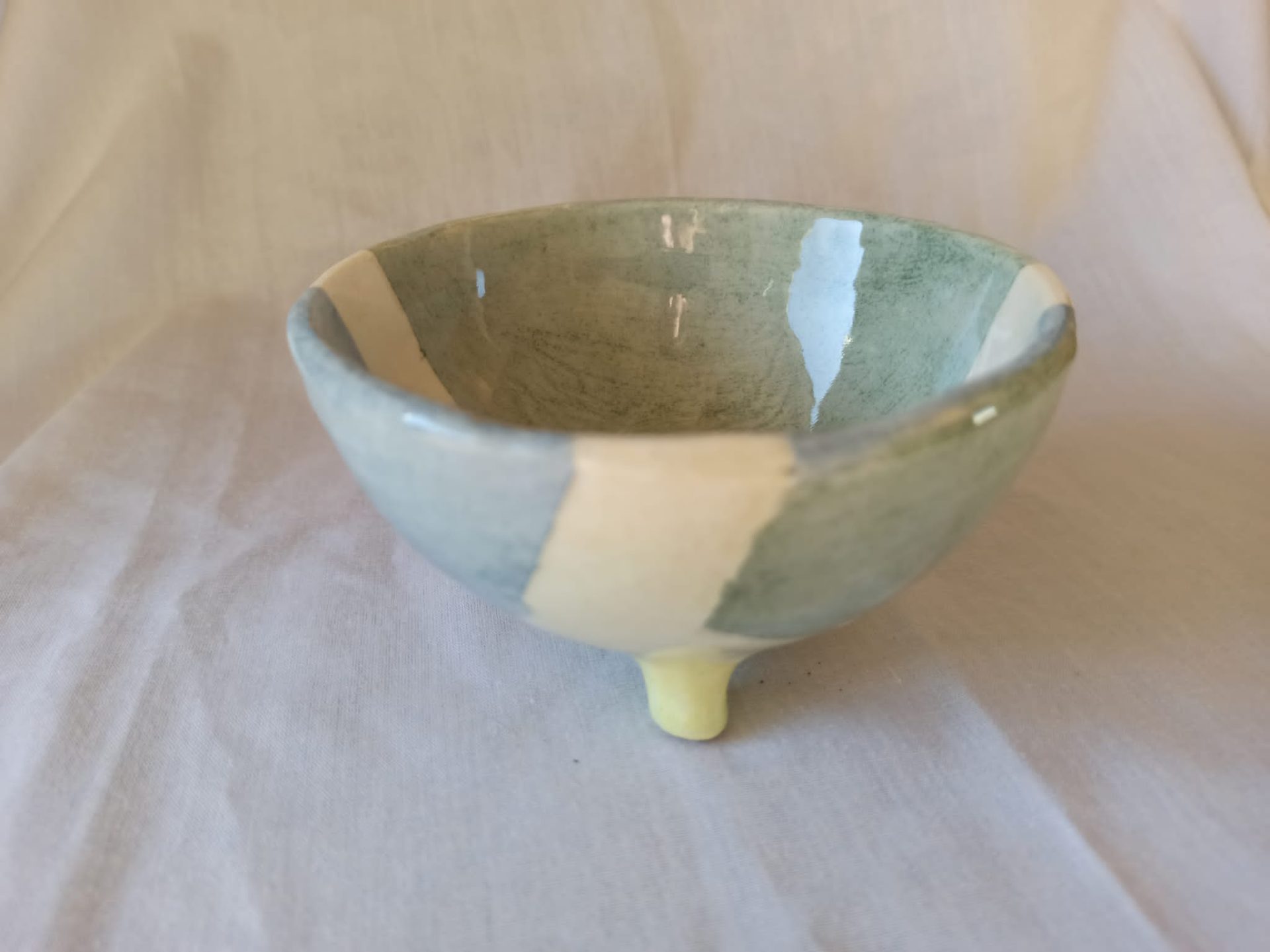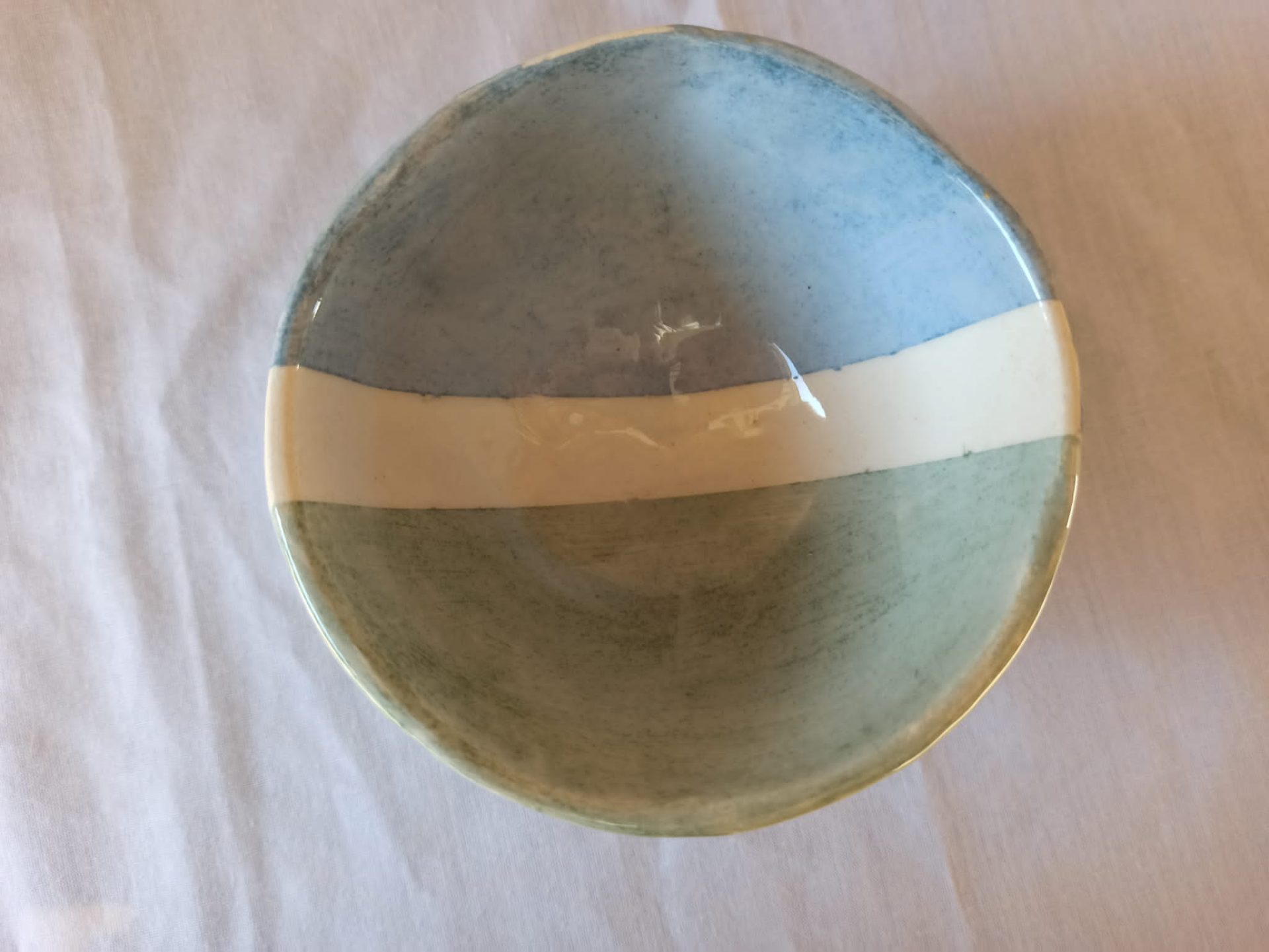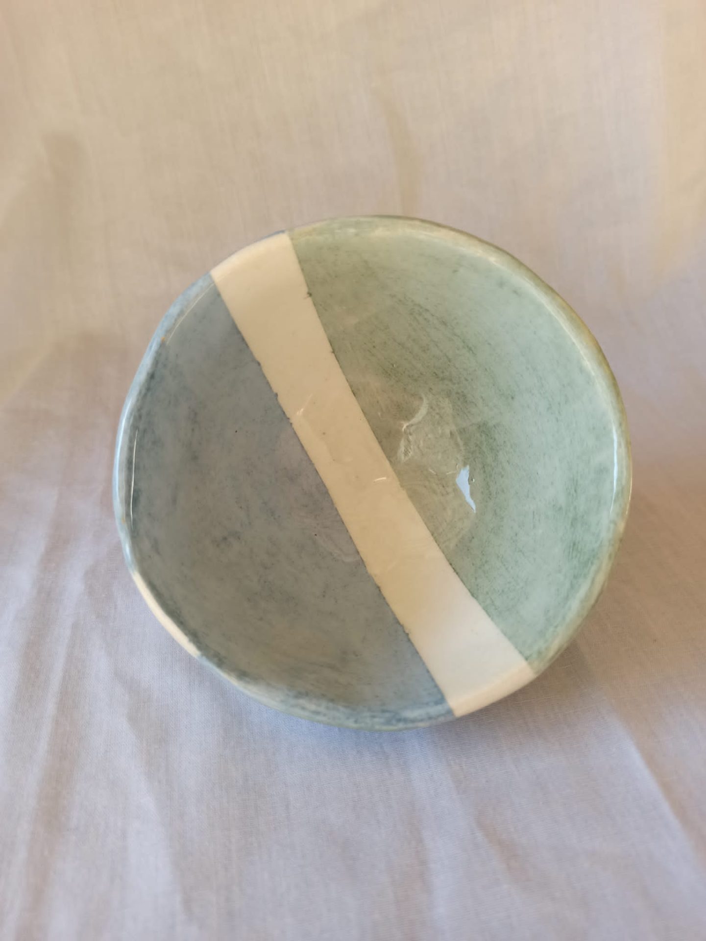 Este cuenco de cerámica artesanal es una pieza única que combina elegancia y funcionalidad con un diseño inspirado en la naturaleza. Su acabado en tonos verdes y blancos evoca la frescura de los bosques y el equilibrio de los elementos naturales, mientras que su pequeña base elevada le aporta un toque distintivo y sofisticado.